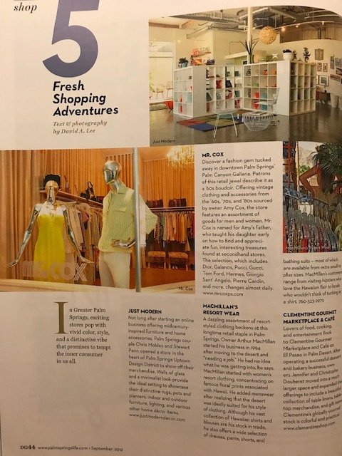 Mr. Cox’s fashion styling and interior design work has been featured in notable publications including The New York Times, The Hollywood Reporter, The Los Angeles Times, Food and Wine Magazine, Huffington Post, Palm Springs Life, as well as in numerous fashion blogs, television shows and commercials.